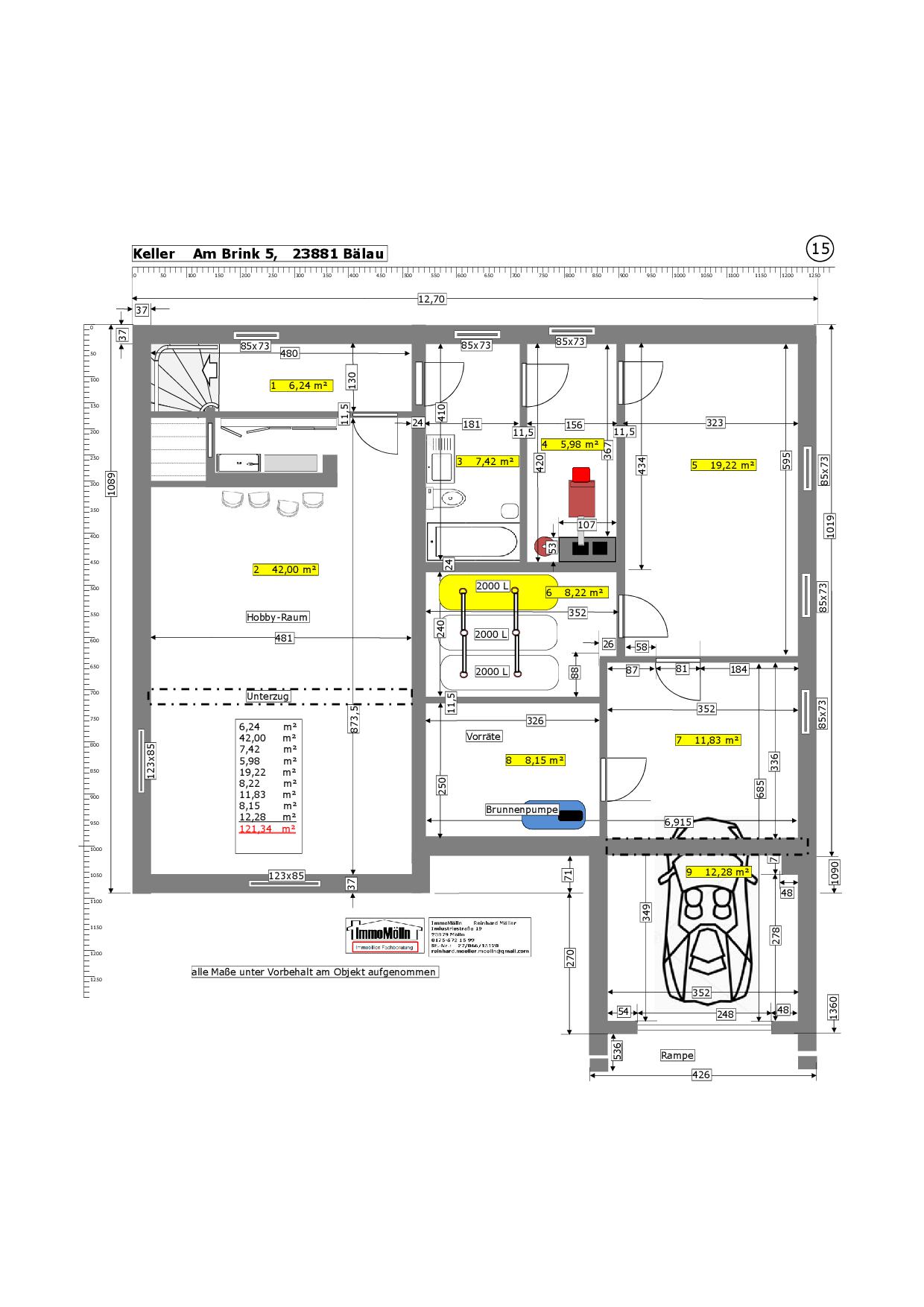 Im Heizöllager befinden sich 3 Stück 2000 L/ Kunststofftanks mit einer Füllmenge von ca. 1000 Litern. Bei der Neugestaltung der Wärmeerzeugung könnte hier ein zusätzlicher Raum entstehen, da die Heizölzanks entfallen werden.